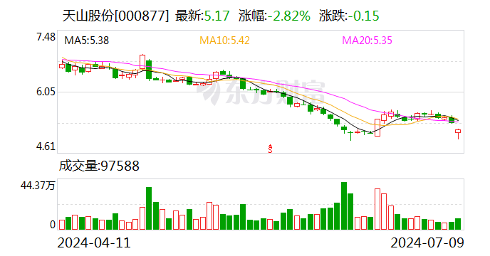 天山股份股票在資本市場上的表現一直較為穩(wěn)健,股價走勢良好,市場認可度較高,這為投資者提供了良好的投資平臺和投資機會。