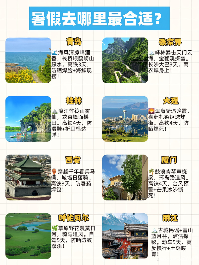 推薦暑假旅游,探索世界各地的美麗與奇跡。無論你喜歡熱帶海灘的陽光與海浪,還是喜歡高山雪域的神秘與壯觀,暑假旅游都能滿足你的需求。從迷人的海濱城市到壯麗的山脈景觀,世界各地的自然美景和人文奇跡等待你去探索發(fā)現(xiàn)。暑假是旅游的絕佳時機(jī),不僅可以放松身心,還能增長見識,豐富人生體驗。
