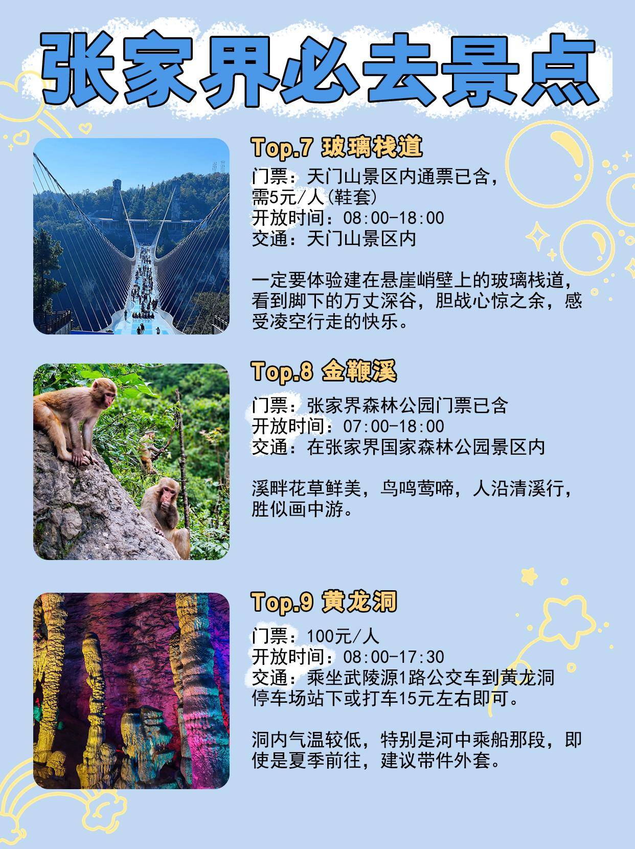 2、季節(jié)選擇:張家界的四季風(fēng)景各異,游客可以根據(jù)自己的喜好和行程安排選擇合適的季節(jié)前往,春秋兩季是張家界的旅游旺季,景色宜人;夏季雖然炎熱,但可以去水上樂園等地方游玩;冬季雖然有些寒冷,但可以去滑雪場體驗(yàn)冰雪樂趣。