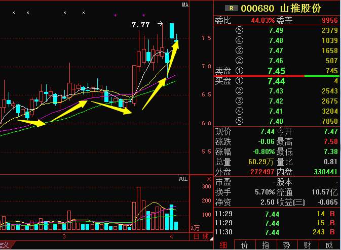 股票000680的技術(shù)面分析
