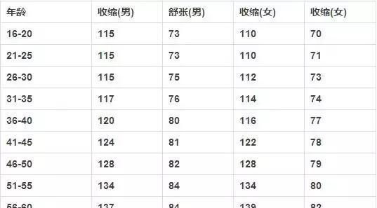40歲至50歲人群血壓對照表